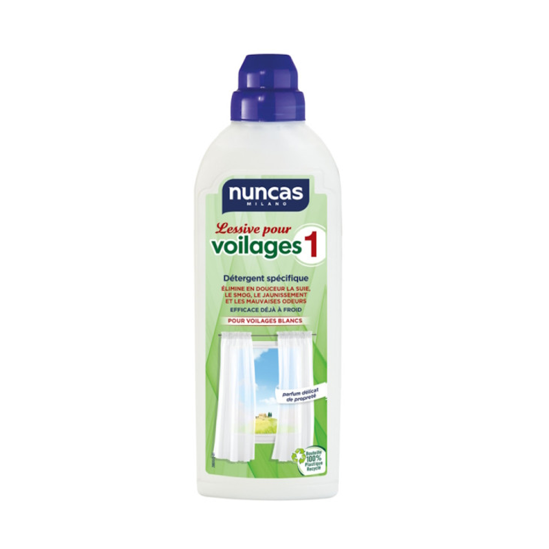 La lessive voilages Nuncas est un détergent spécifique conçu pour le lavage des voilages blancs.